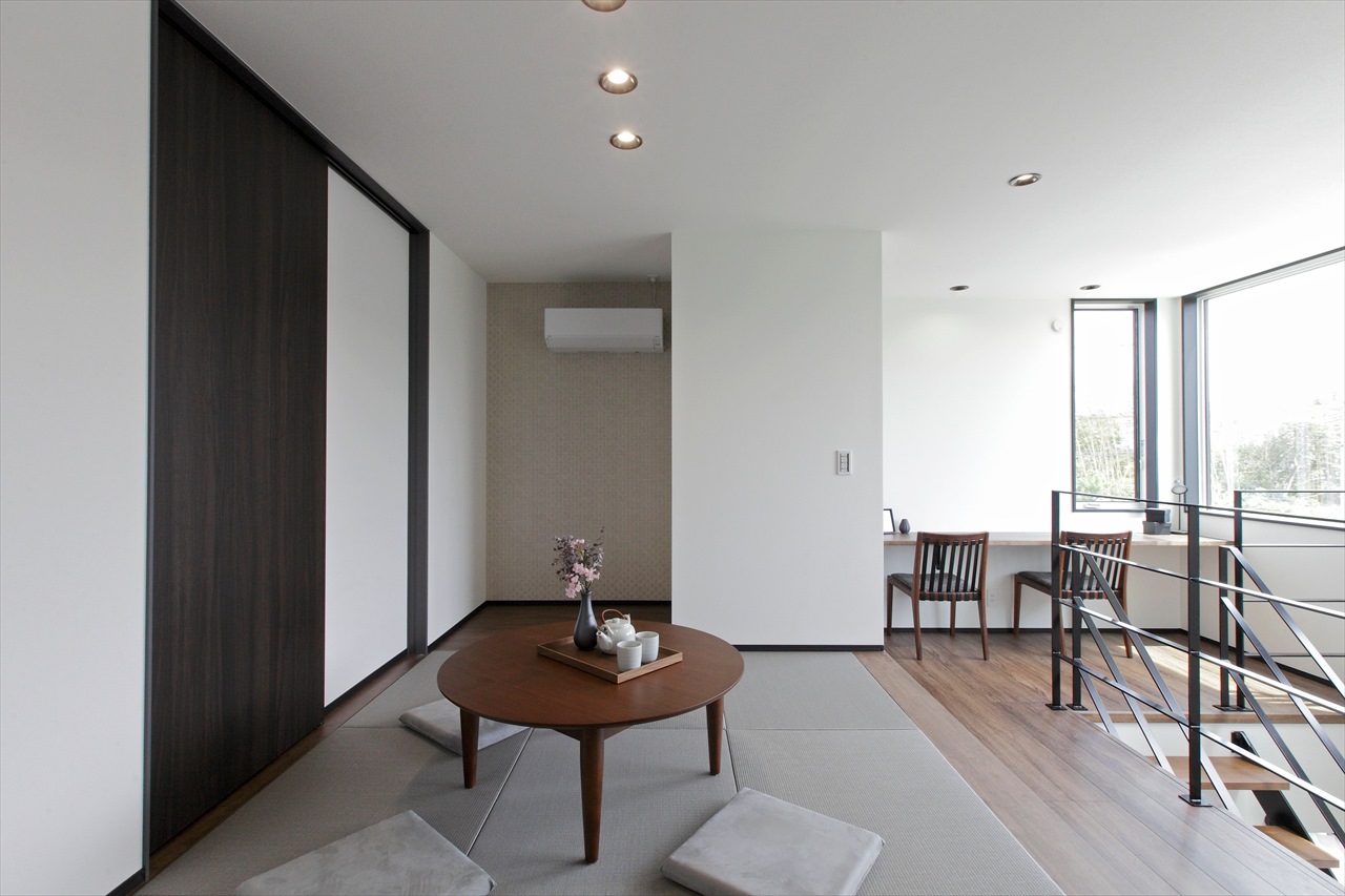 床材は世界三大銘木のウォールナットでシックな雰囲気を演出