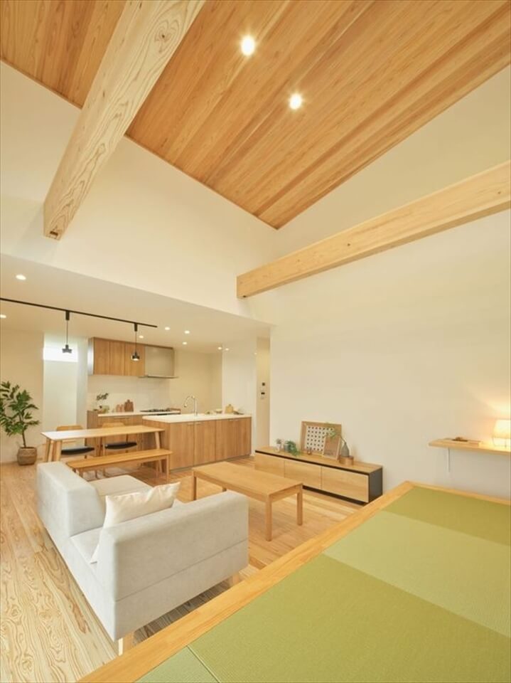 家族が集う勾配天井のリビング