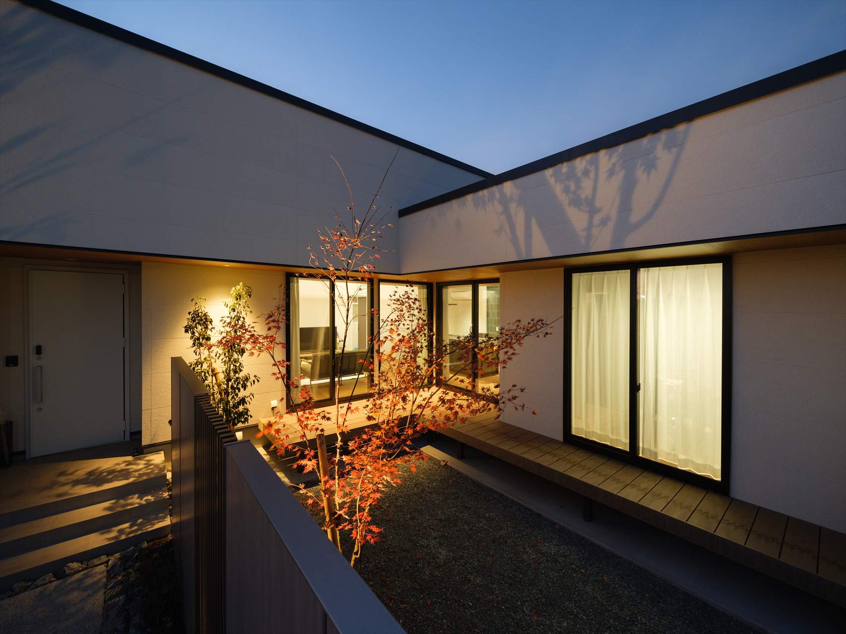 目隠し塀を備えたプライベート中庭。